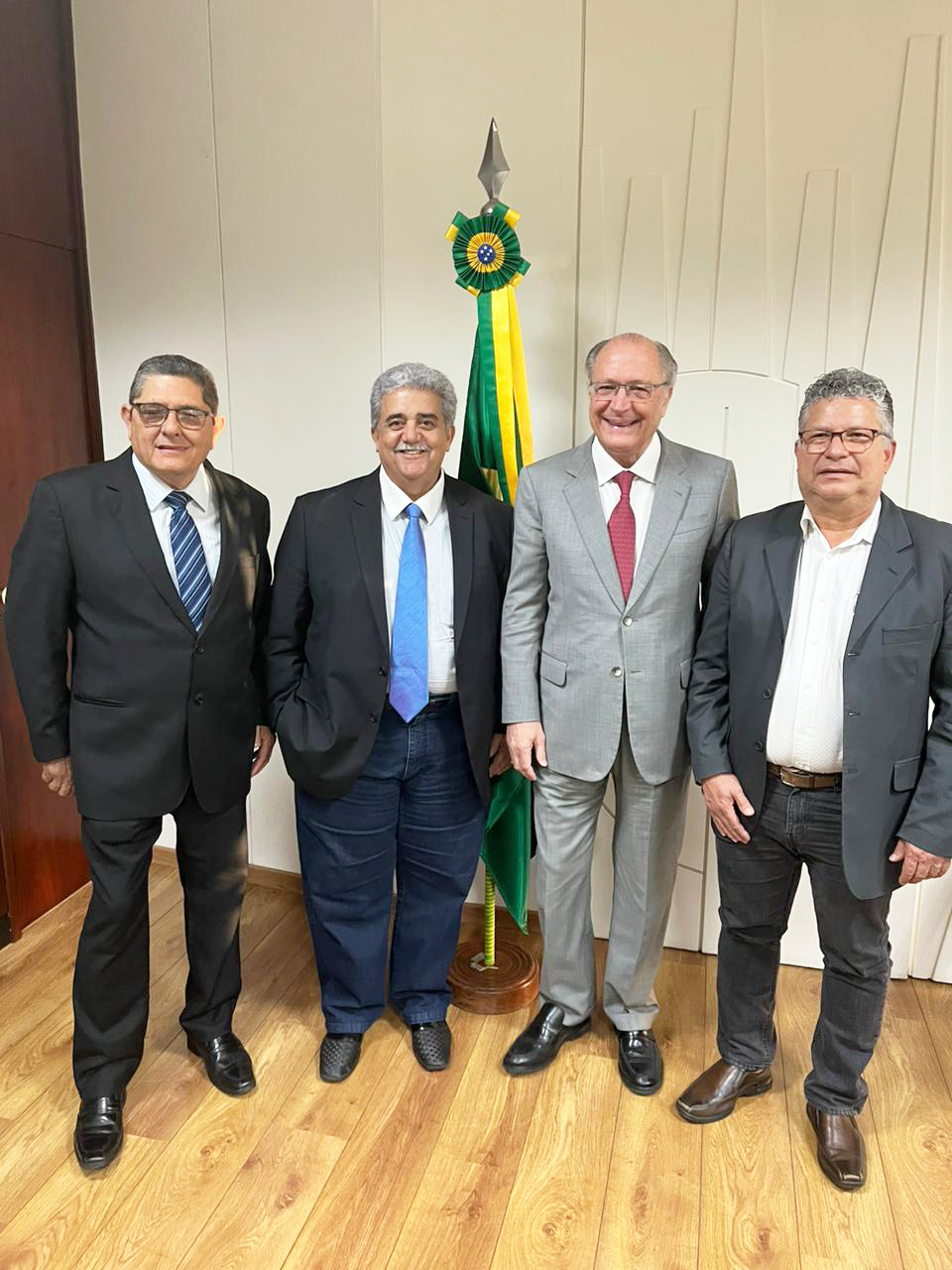 Antonio Vitor – Presidente da Federação dos Trabalhadores nas Indústrias de Alimentação do Estado de São Paulo, acompanhado do Presidente da Federação dos Trabalhadores nas Indústrias Químicas e Farmacêuticas do Estado de São Paulo – FEQUIMFAR – Sérgio Leite, entre demais lideranças sindicais, se reuniram com o Vice-Presidente e Ministro do Desenvolvimento, Indústria e Comércio – Geraldo Alckmin.