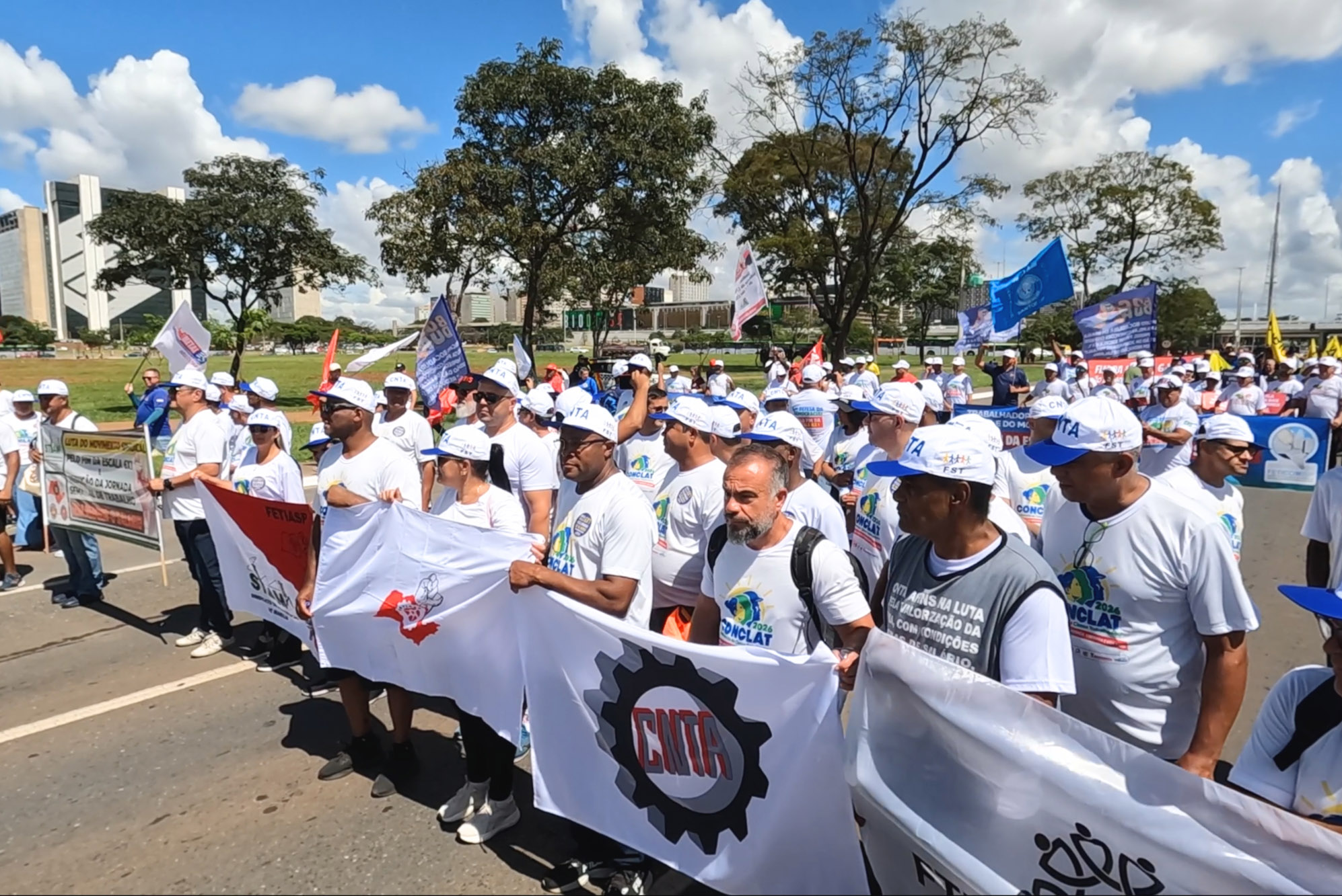 Milhares de trabalhadores de diversas regiões do país ocuparam as ruas da capital federal em uma grande marcha até a Praça dos Três Poderes, reforçando a mobilização nacional em defesa de direitos sociais e melhores condições de vida.