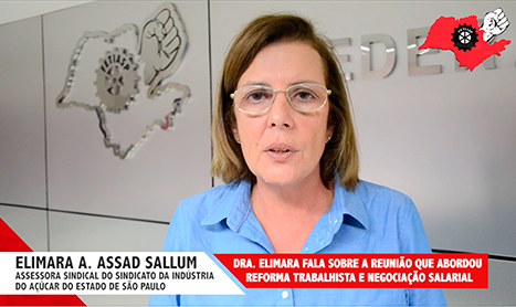 Dra. Elimara A. Assad Sallum fala sobre a reunião que abordou Reforma Trabalhista e Negociação Salarial, dentro do setor Suco Energético realizada na Federação dos Trabalhadores nas Indústrias de Alimentação do Estado de São Paulo juntamente com os representantes dos Sindicatos Filiados.