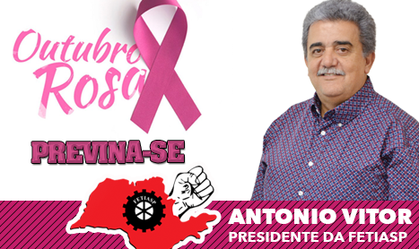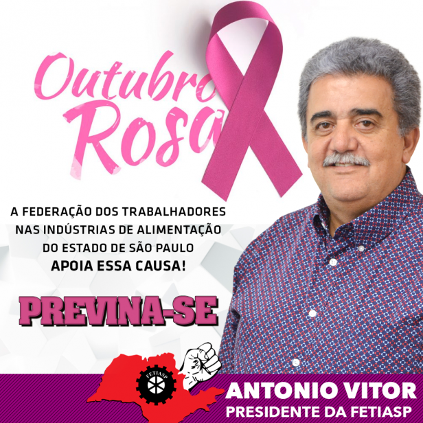 Outubro é o mês da Campanha de prevenção contra o câncer de mama. Participamos desta campanha todos os anos para alertar mulheres e homens sobre a importância de prevenir e fazer o diagnóstico precoce de mama. “Quando começamos este trabalho”, conta Antonio Vítor, presidente da Fetiasp (Federação dos Trabalhadores nas Indústrias da Alimentação do Estado de São Paulo) conversávamos com as companheiras nas portas das fábricas. Hoje, muitas cidades têm programações específicas sobre o tema, o que é ótimo”.